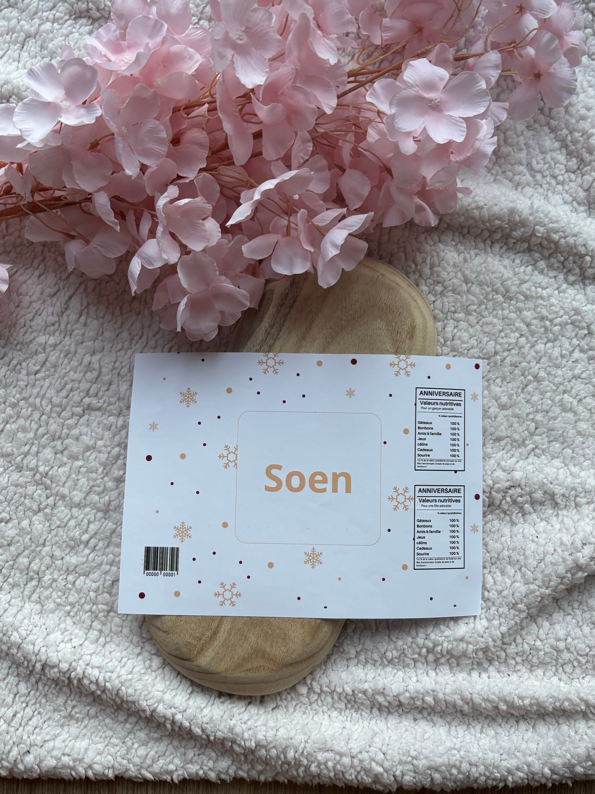 Une étiquette personnalisée au design raffiné et gourmand, décorée selon votre thème de noël ,couleur que vous accompagnerez d’un touche salée.