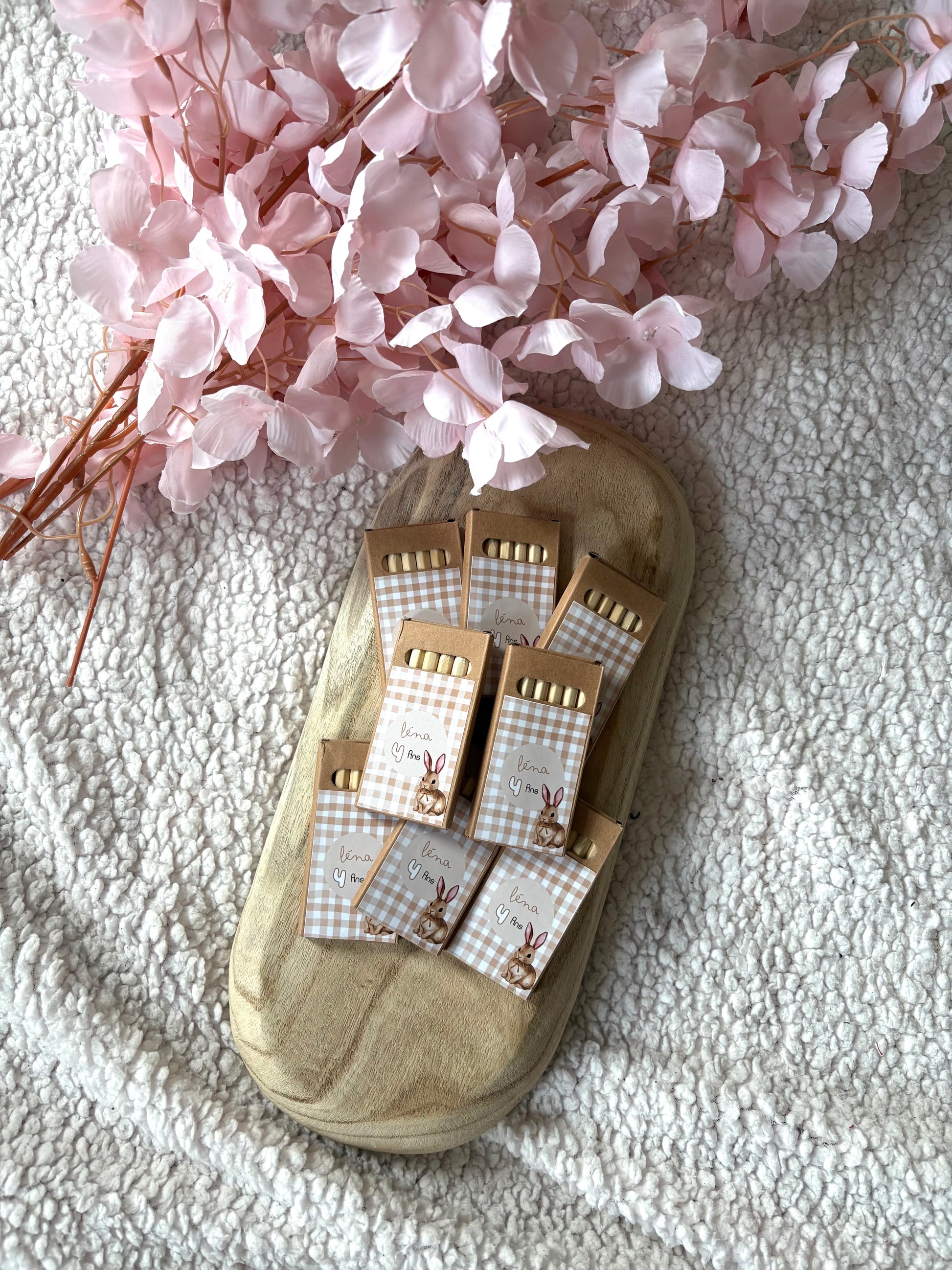 Chaque étui, décoré dselon votre thématique attendrissante , porte le prénom et l’âge de l’enfant — un souvenir unique à emporter après la fête. 🌷✨